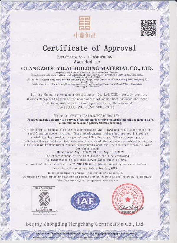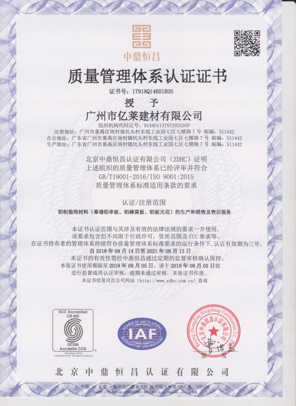 About us廣州市億萊建材有限公司廣州市億萊建材有限公司成立于2007年1月是一家專業設計、生產、銷售全系列鋁質天花、集成吊頂、藝術天花板、非標造型金屬天花、室內外鋁單板及鋁蜂巢板幕墻、金屬裝飾工程配套材料的專業企業;位于南中國經濟強區珠江三角洲的廣州市番禺區(也是一個技術及資源集中的專業金屬裝飾材料生產基地);億萊公司屬下品牌:“YILAI億萊”金屬天花&幕墻 及 家居整體吊頂;公司具有年產鋁質天花300萬平方米,非標金屬天花及鋁質幕墻60萬平方米的生產能力。 |